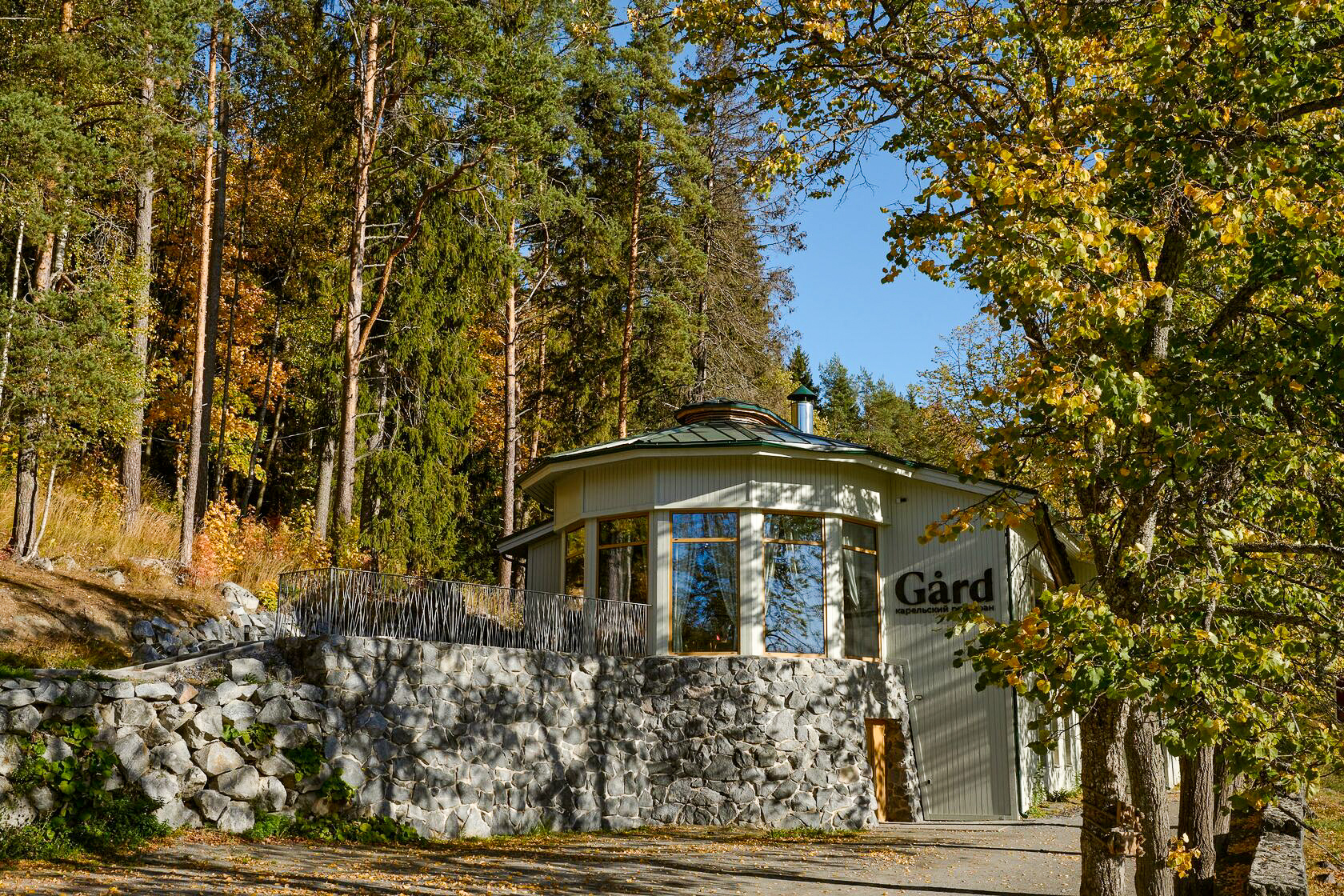 Отель расположен в Кирьявалахти, рядом с древним кратером одноимённого вулкана, на месте которого теперь плещется озеро. Дорога здесь вдоль залива напоминает итальянское озеро Гарда - в прошлый раз, когда я это особенно прочувствовал, увидел название ресторана Gard, мимо которого мы проезжали. И теперь именно в нём, с панорамным видом на Ладогу, у нас запланирован завтрак.